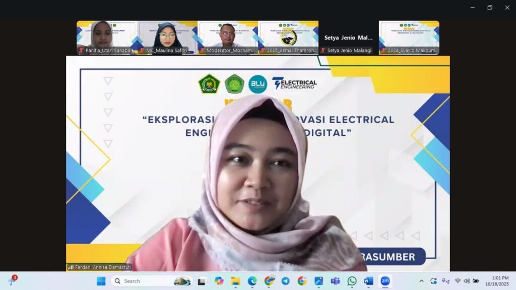 جامعة العلوم والتكنولوجيا في مالانج - (18/10/2025) نظم برنامج دراسة الهندسة الكهربائية بكلية العلوم والتكنولوجيا في جامعة مولانا مالك إبراهيم مالانج الإسلامية الحكومية ندوة وطنية عبر الإنترنت بعنوان “استكشاف بحوث الهندسة الكهربائية والابتكار في العصر الرقمي”. حضر هذا النشاط، الذي أقيم عبر الإنترنت من خلال اجتماع زووم (Zoom Meeting)، حوالي 100 مشارك من المحاضرين وأعضاء هيئة التدريس و [...].