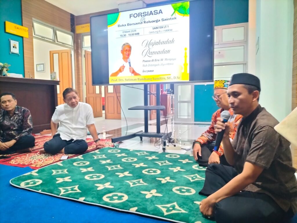 Kegiatan yang berlangsung penuh hikmah ini mengusung tema “Mujahadah Ramadan: Puasa di Era AI – Menjaga Ruh Ditengah Algoritma”. Dalam kesempatan tersebut, Prof. Drs. Sutiman Bambang Sumitro, S.U., D.Sc., memberikan ceramah yang menyentuh mengenai pentingnya menjaga esensi spiritualitas di bulan Ramadan, di tengah pesatnya perkembangan teknologi dan kecerdasan buatan (AI).